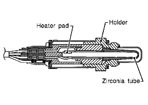 This sensor is made of ceramic zirconia. The zirconia generates voltage from approximately 1 V in richer conditions to 0 V in leaner conditions.