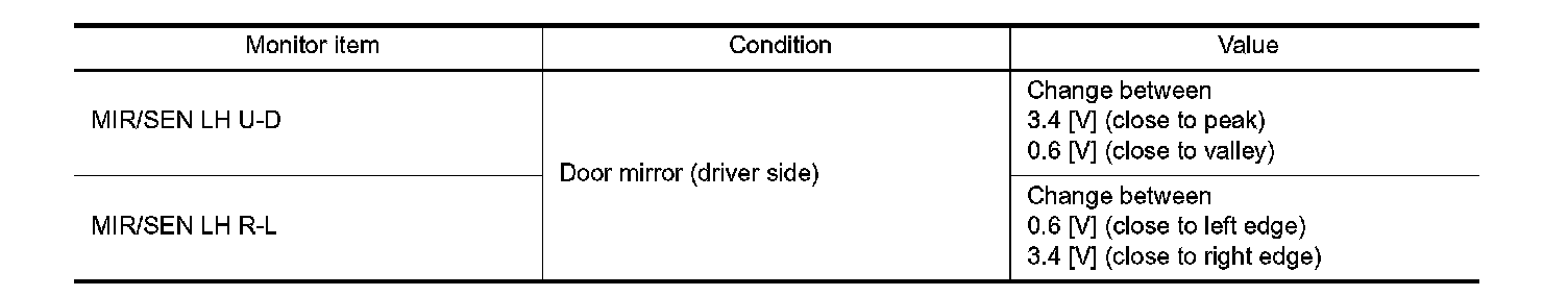 2.Check mirror sensor (driver side) signal under the following condition.
