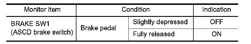 3.Check "BRAKE SW-1" indication under the following conditions.