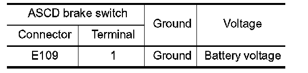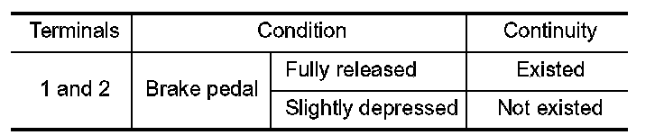 2.Check the continuity between ASCD brake switch terminals under the following conditions.