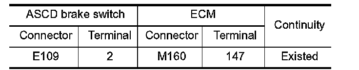 3.Check the continuity between ASCD brake switch terminals under the following conditions.