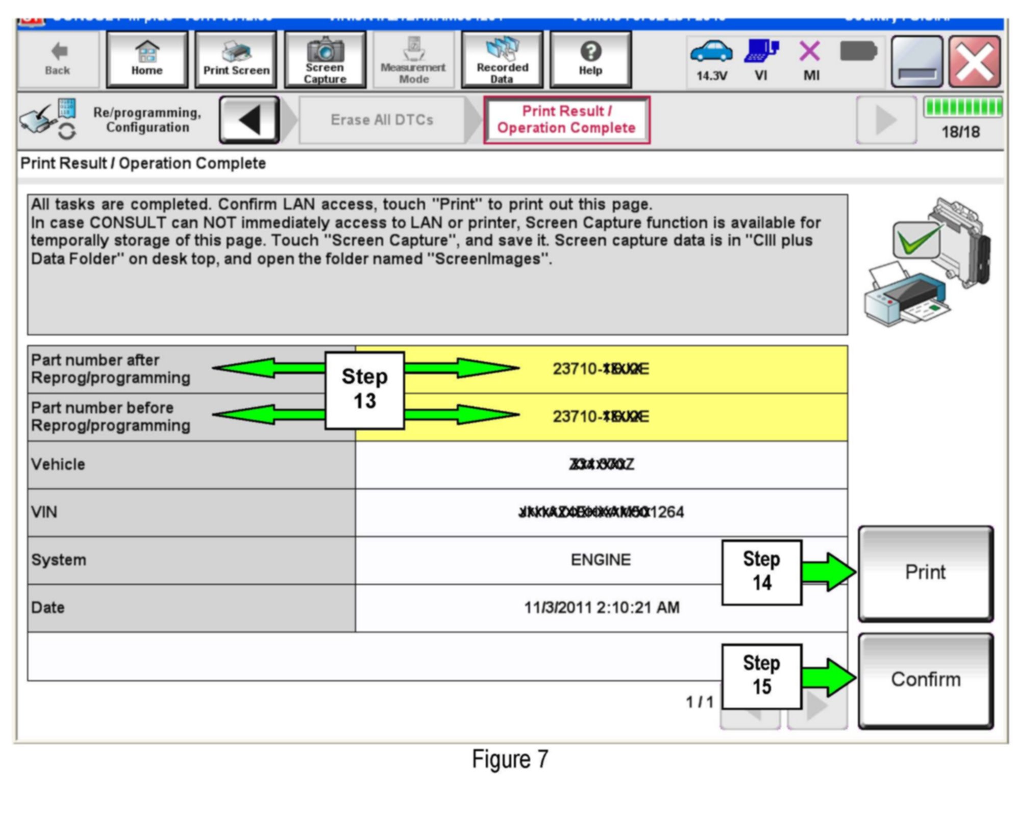 14. Print a copy of this screen (Figure 7) and attach it to the repair order for warranty documentation.