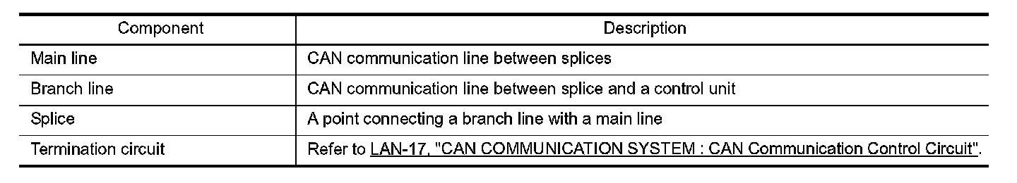 Each control unit passes an electric current to the termination circuits when transmitting CAN communication signal. The termination circuits produce an electrical potential difference between CAN-H and CAN-L. CAN