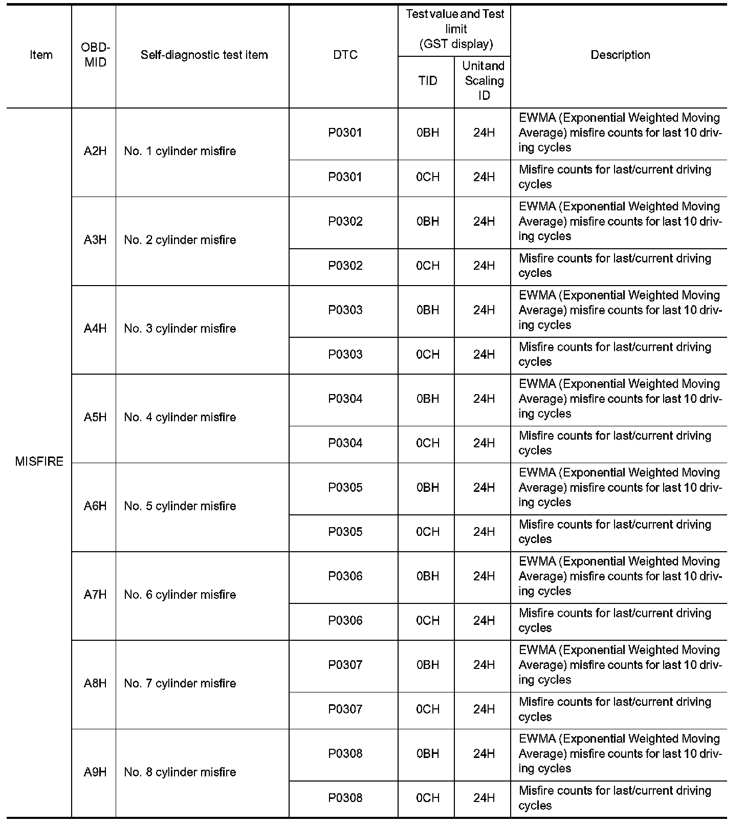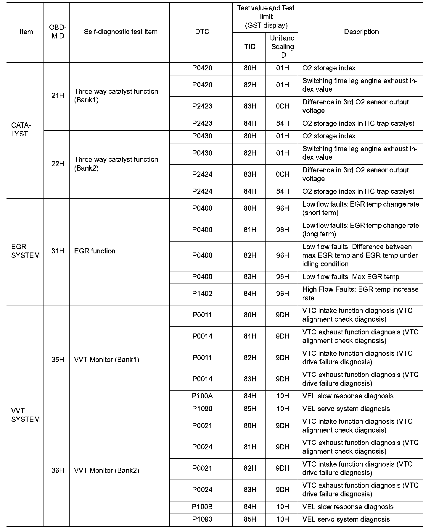 These data (test value and test limit) are specified by On Board Monitor ID (OBDMID), Test ID (TID), Unit and