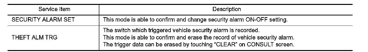 THEFT ALM : CONSULT Function (BCM - THEFT)