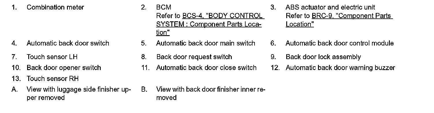 AUTOMATIC BACK DOOR SYSTEM : Component Parts Location