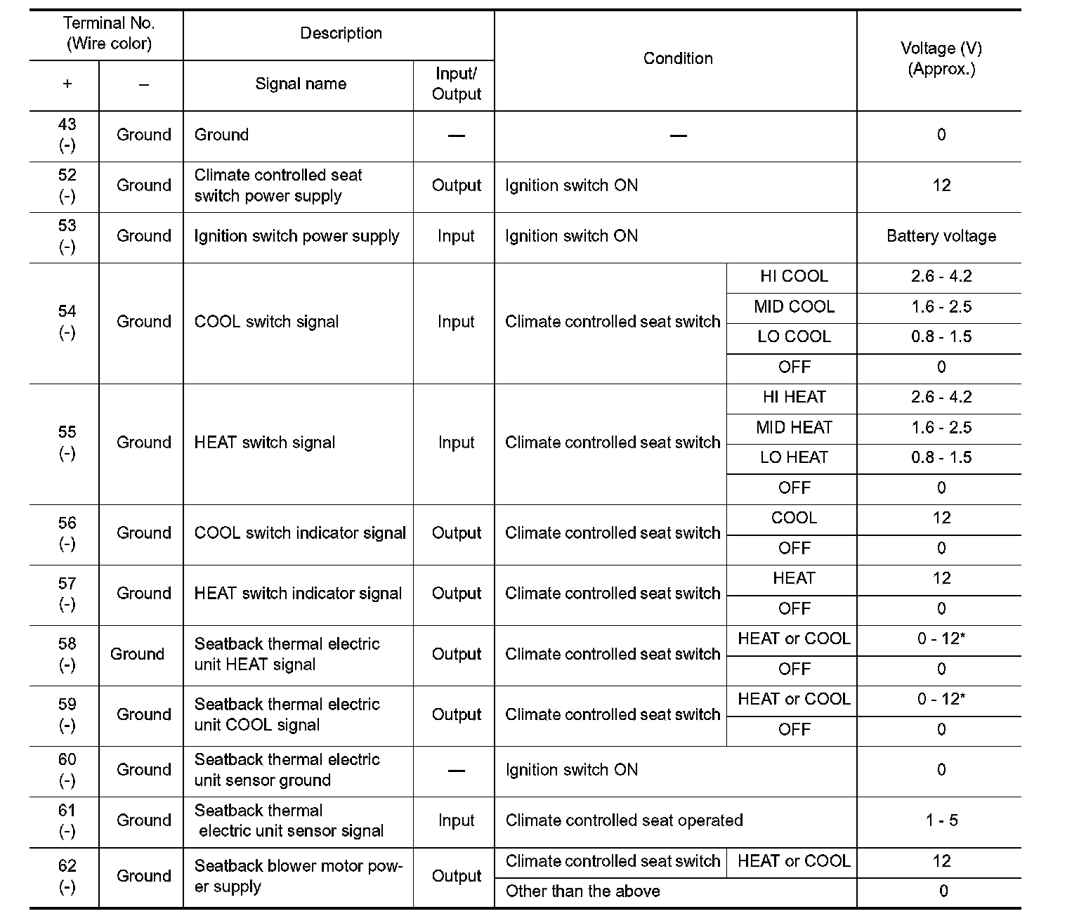CLIMATE CONTROLLED SEAT CONTROL UNIT