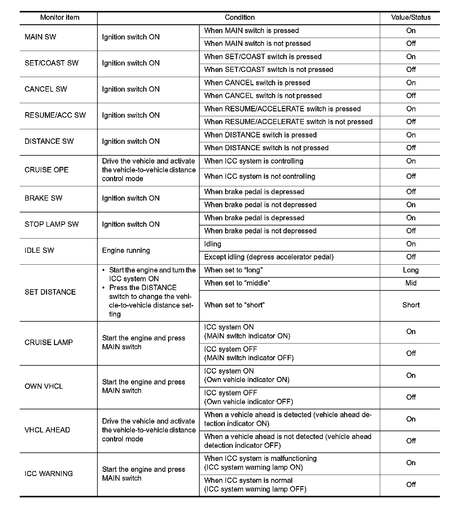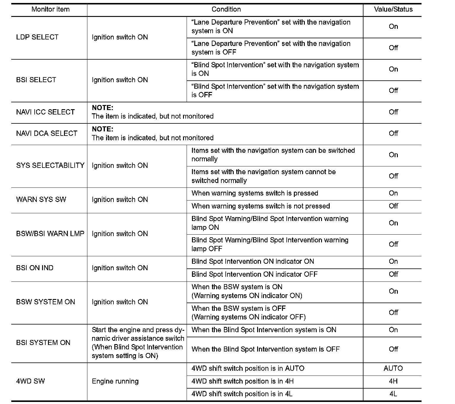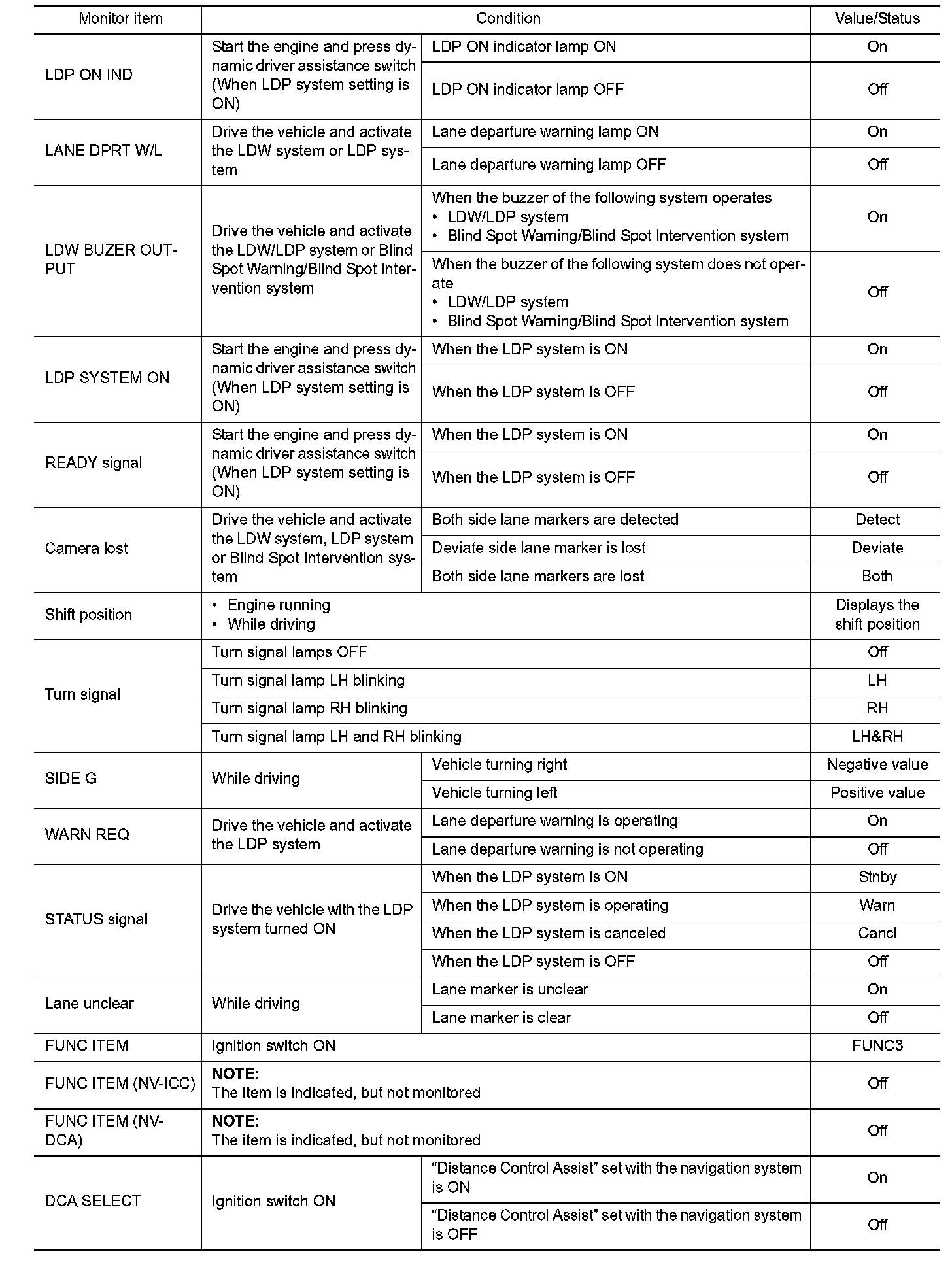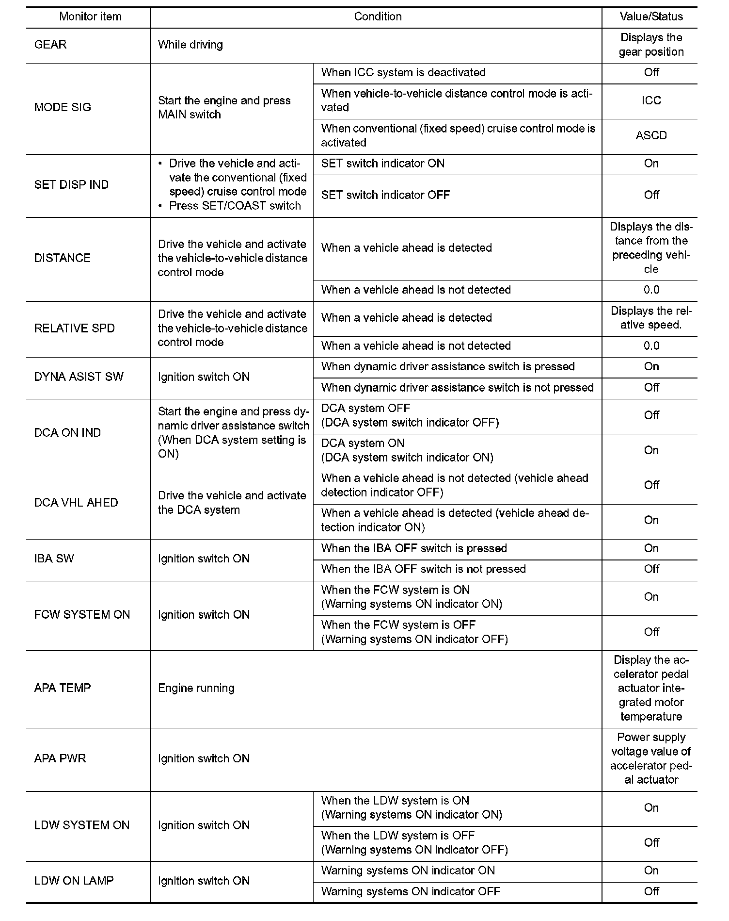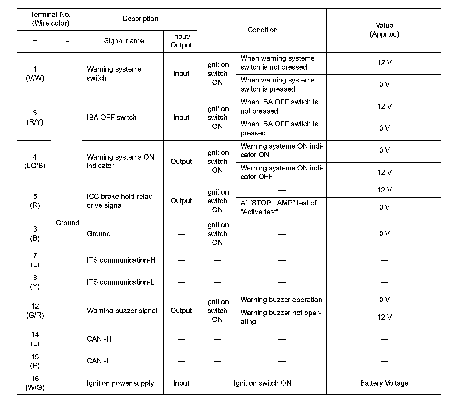 Pinout Values and Diagnostic Parameters