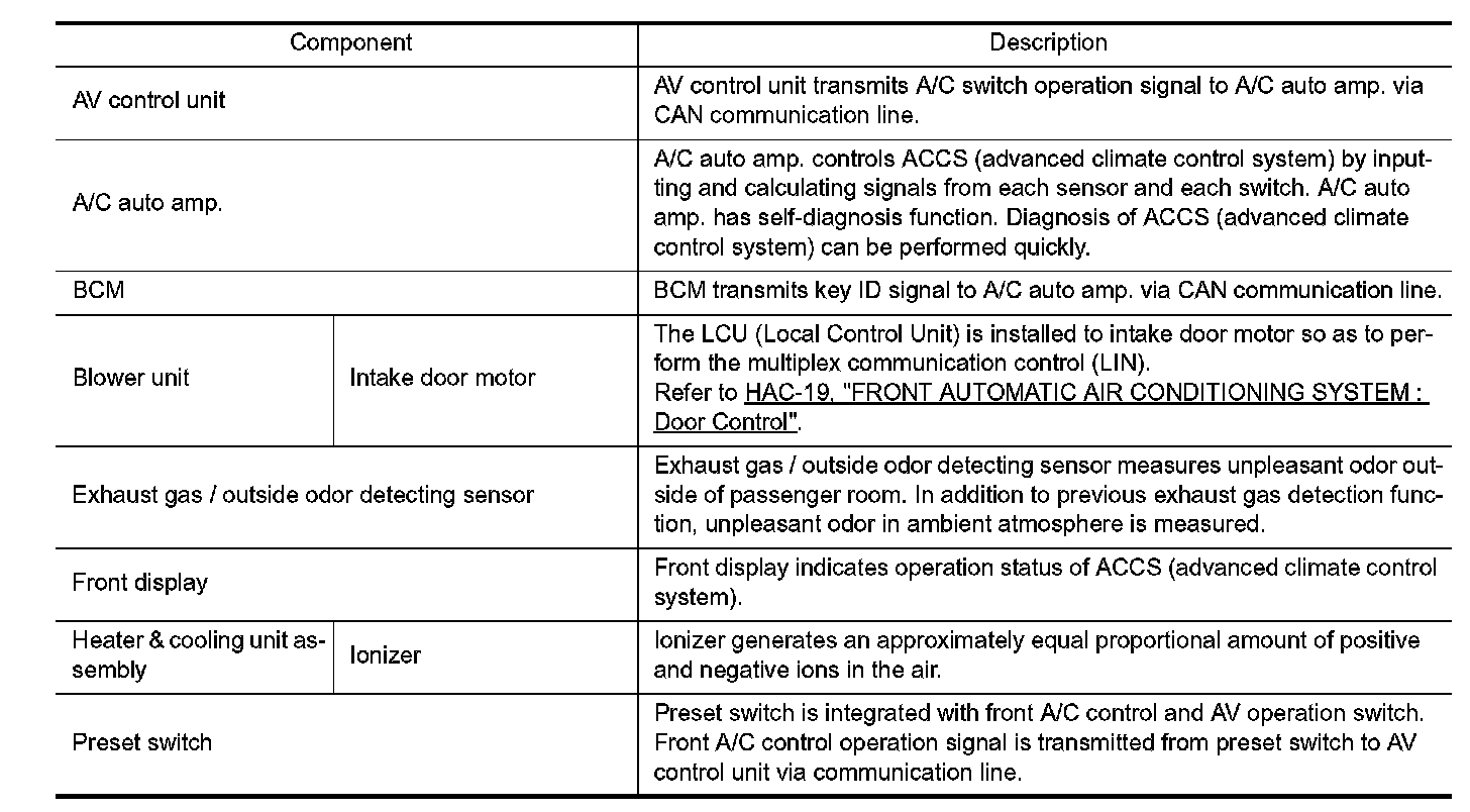 ACCS (ADVANCED CLIMATE CONTROL SYSTEM) : Component Description