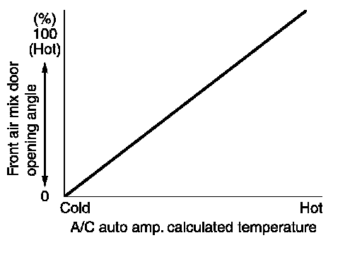 - A/C auto amp. calculates the target front air mix door opening angle depending on set temperature, in-vehicle temperature (front side), ambient temperature, and sunload.