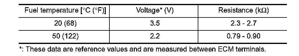 The fuel tank temperature sensor is used to detect the fuel temperature inside the fuel tank. The sensor modifies a voltage signal from the ECM. The modified signal returns to the ECM as the fuel temperature input. The sensor uses a thermistor which is sensitive to the change in temperature. The electrical resistance of the thermistor decreases as temperature increases.