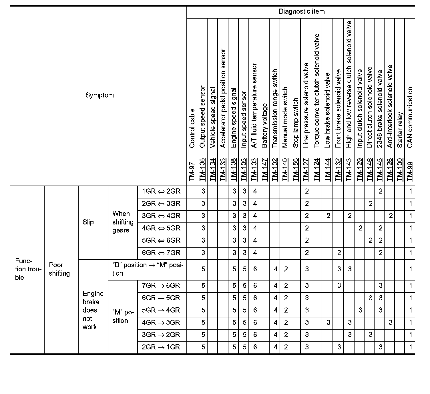 - The diagnostics item numbers show the sequence for inspection. Inspect in order from item 1.