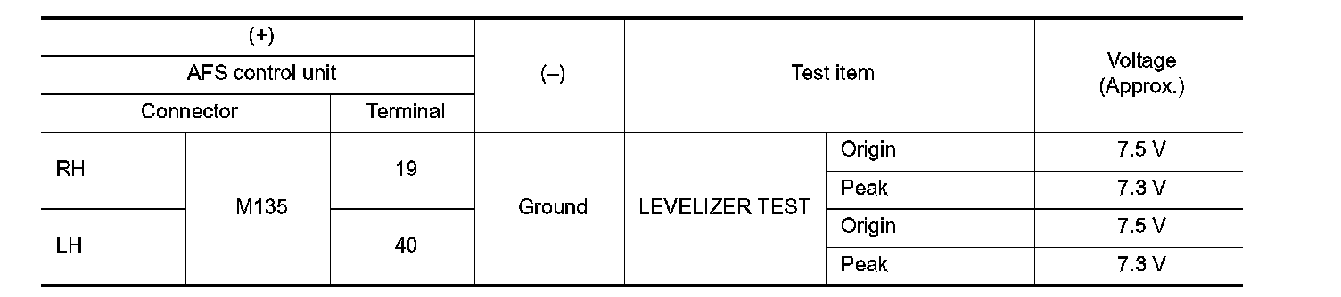 4.With operating the test item, check voltage between AFS control unit harness connector and ground.