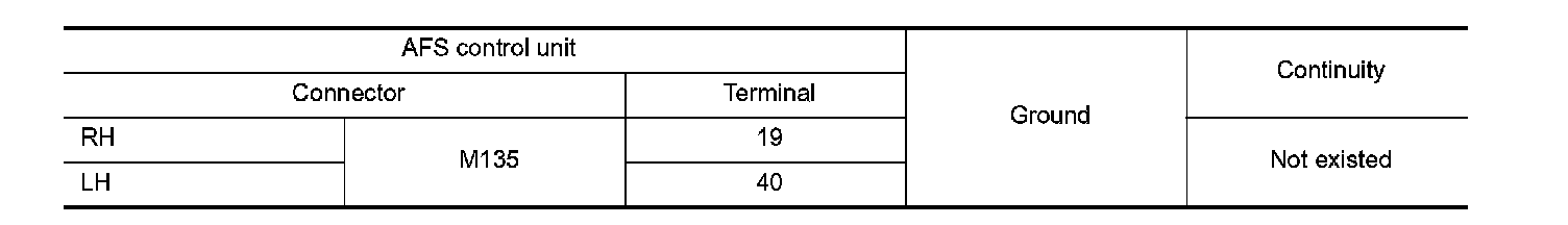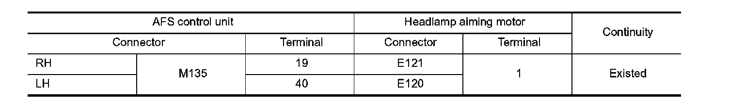 3.Check continuity between AFS control unit harness connector and head lamp aiming motor harness connector.