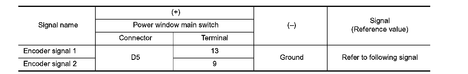 2.Check signal between power window main switch harness connector and ground with oscilloscope.