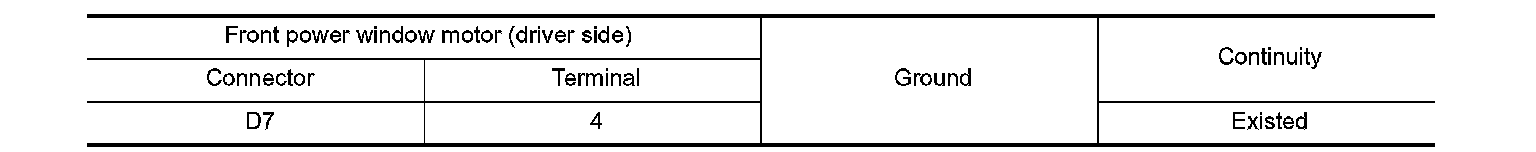 2.Check continuity between front power window motor (driver side) harness connector and ground.