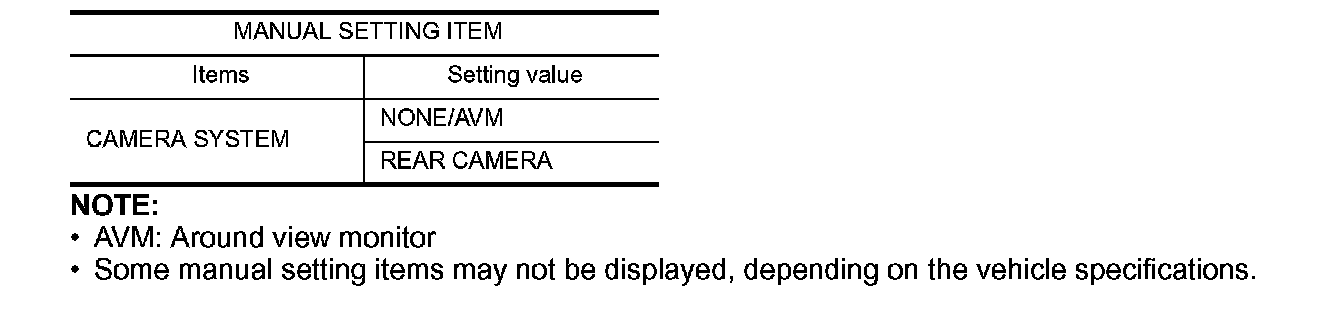 - Some manual setting items may not be displayed, depending on the vehicle specifications.