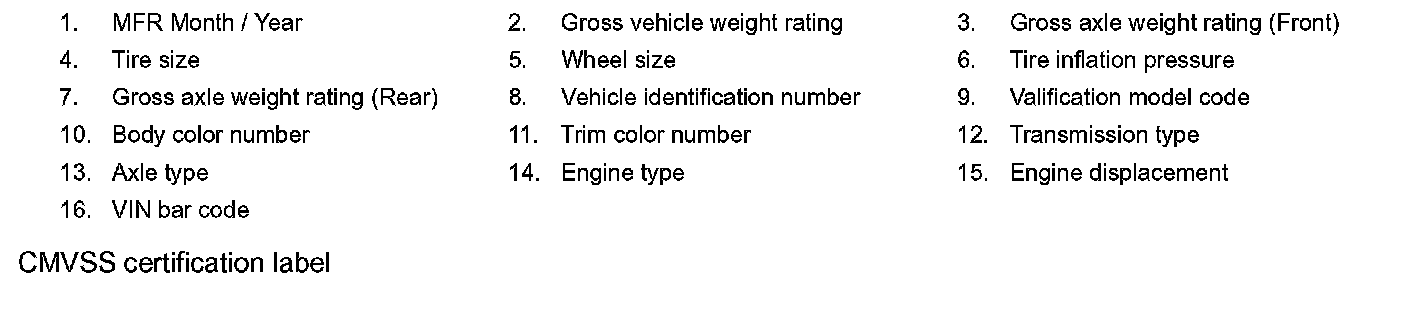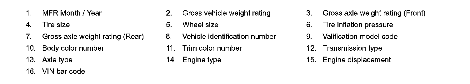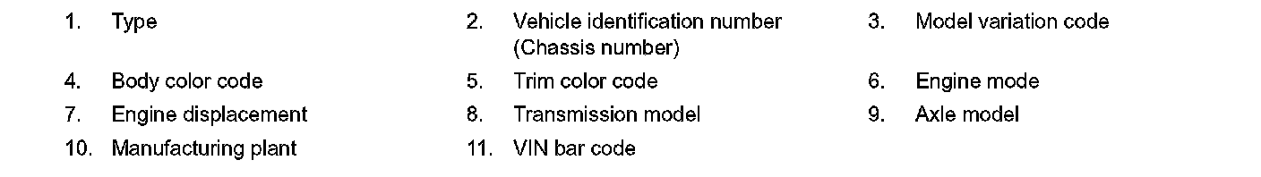 VEHICLE IDENTIFICATION NUMBER ARRANGEMENT