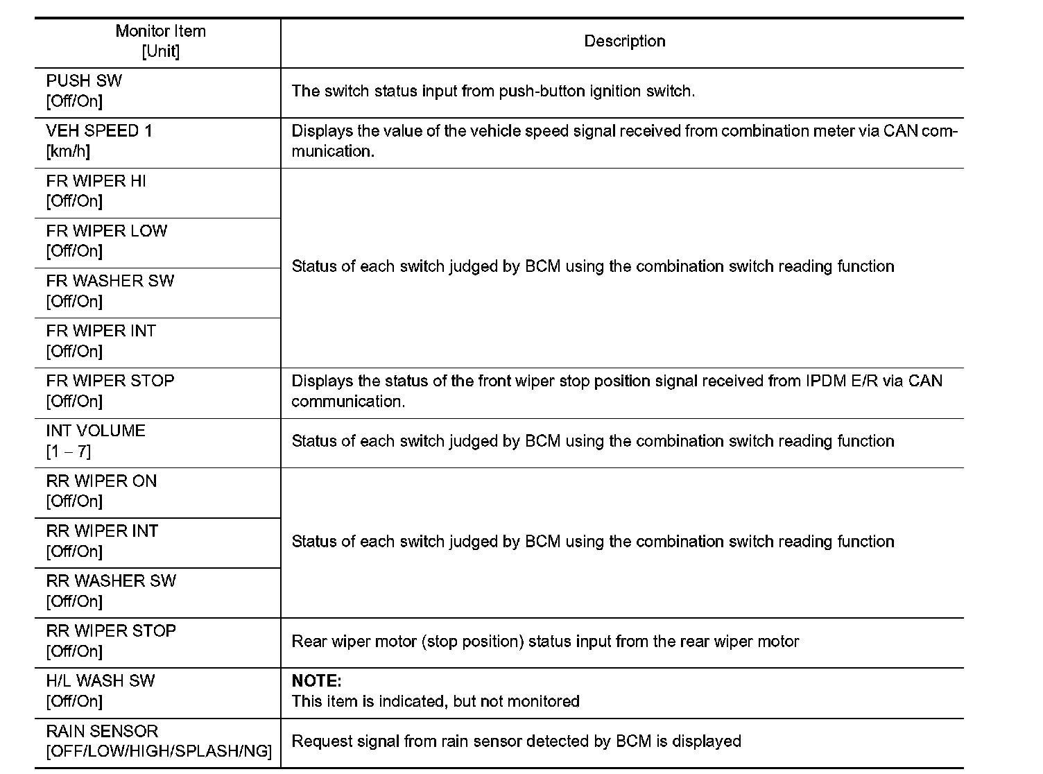 WIPER : CONSULT Function (