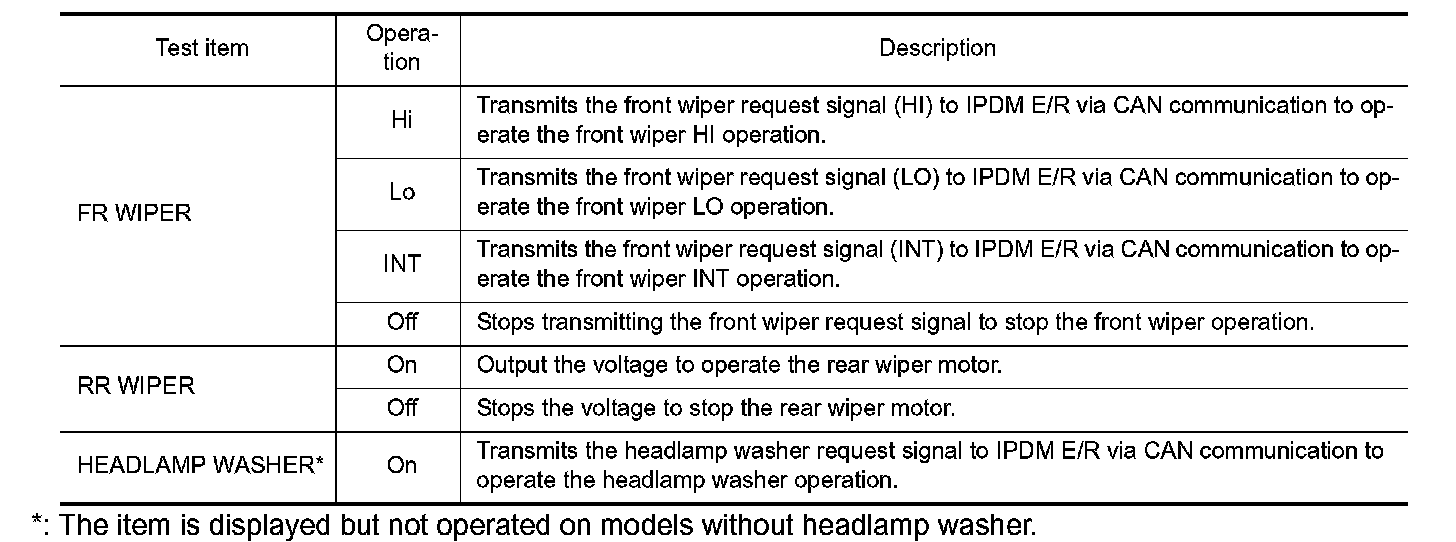 *: The item is displayed but not operated on models without headlamp washer.