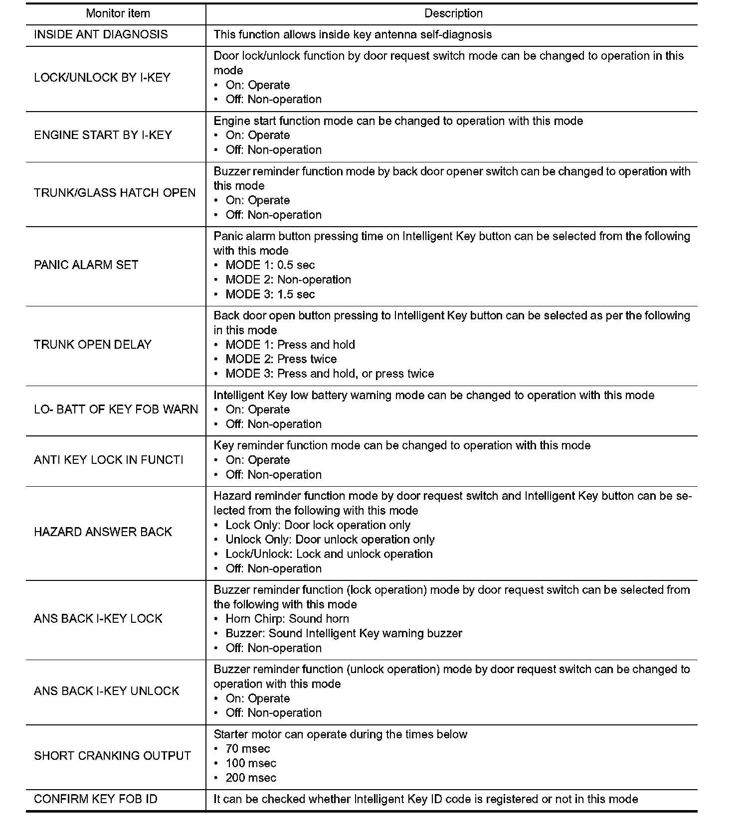INTELLIGENT KEY : CONSULT Function (BCM - INTELLIGENT KEY)
