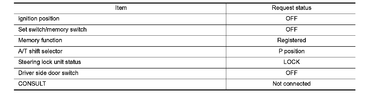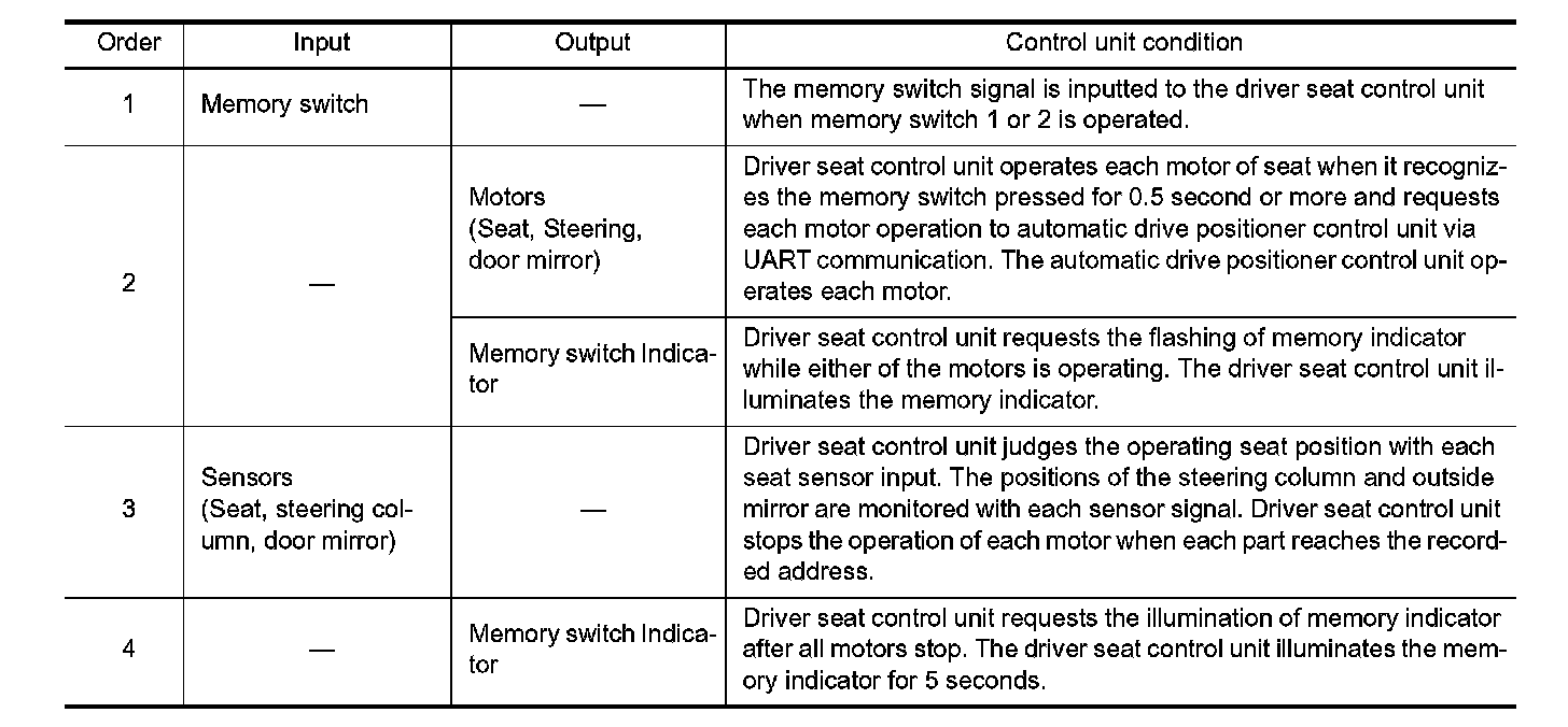 - The memory function can be performed for 45 seconds after opening the driver door even if the ignition switch position is in OFF position.