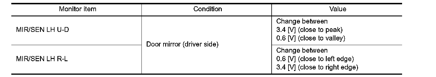 2.Check mirror sensor (driver side) signal under the following condition.