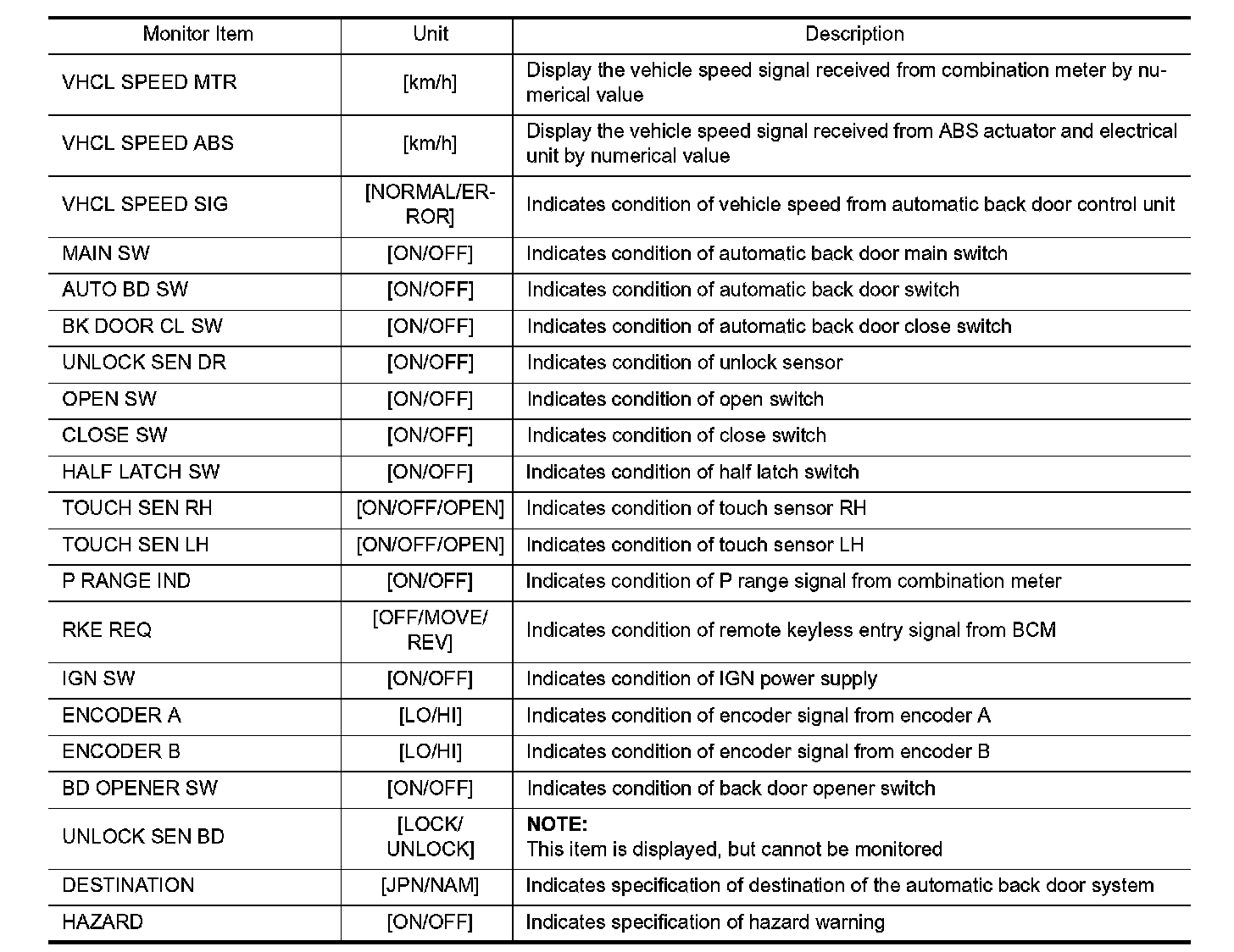 DIAGNOSIS SYSTEM (AUTOMATIC BACK DOOR CONTROL UNIT)