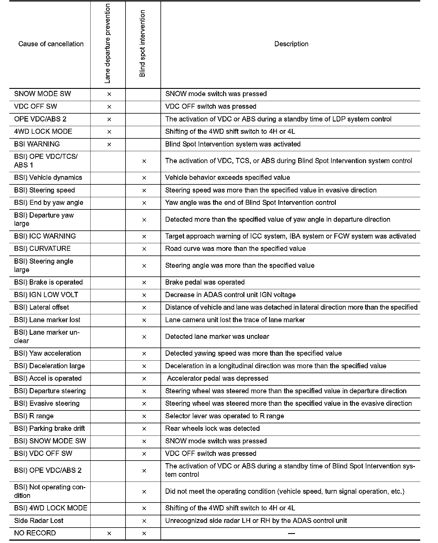 - Blind Spot Warning/Blind Spot Intervention warning lamp