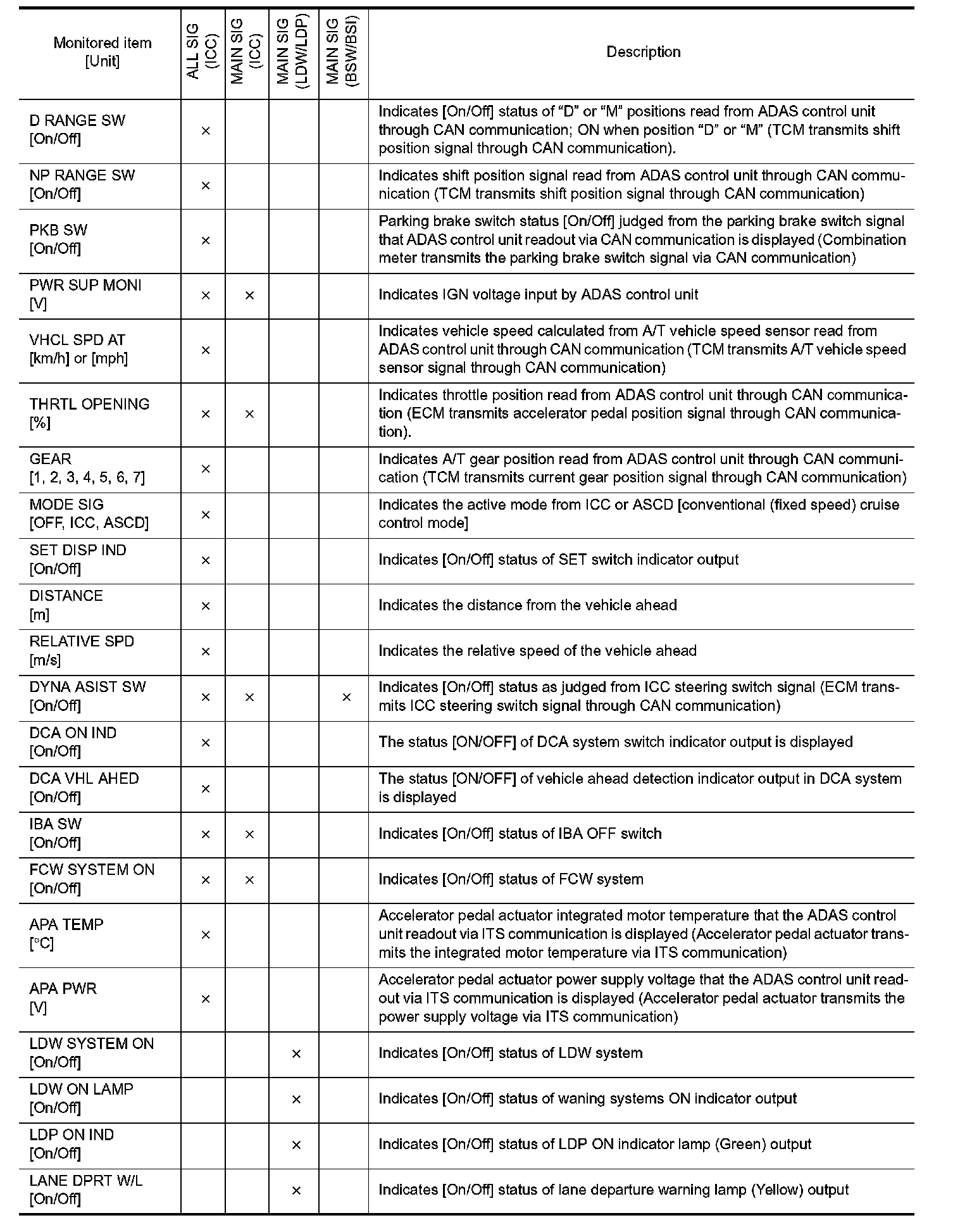 CONSULT performs the following functions via CAN communication using ADAS control unit.