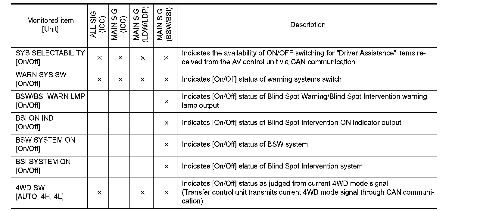 DIAGNOSIS SYSTEM (ADAS CONTROL UNIT)