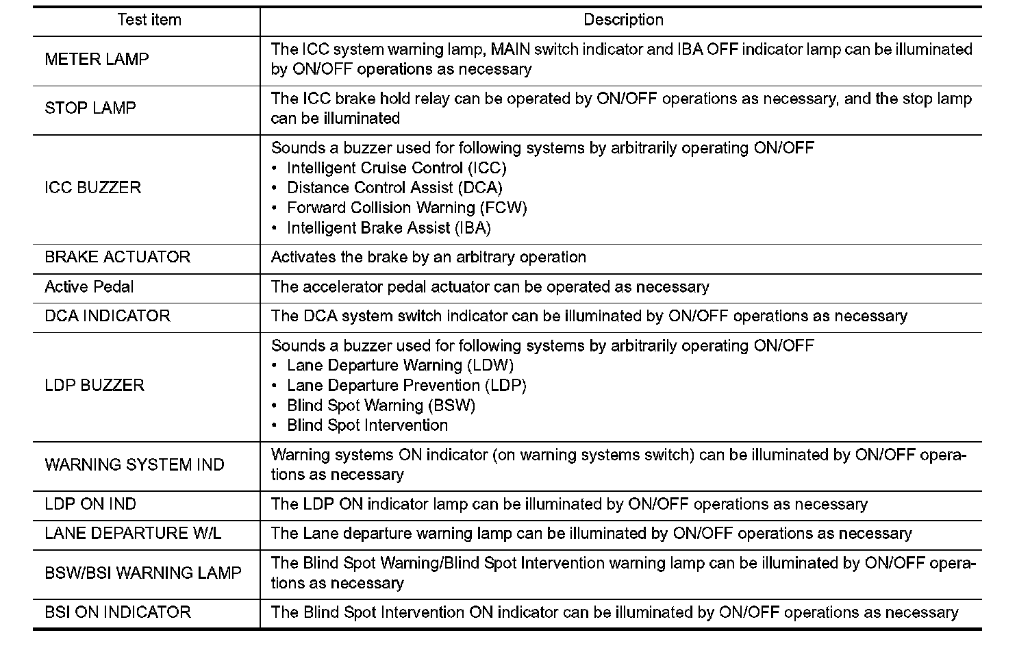 - The "Active Test" cannot be performed when the following systems warning lamp is illuminated.