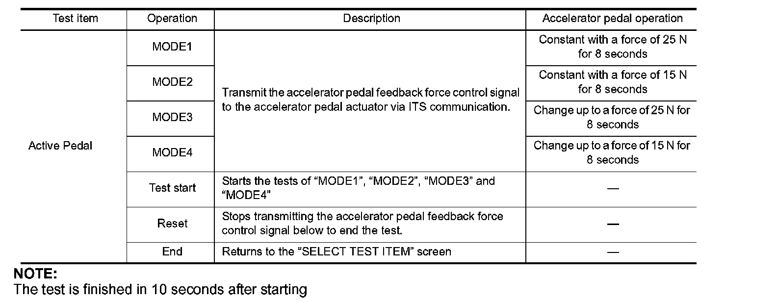 - Never depress the accelerator pedal excessively. (The engine speed may rise unexpectedly when finishing the test.)