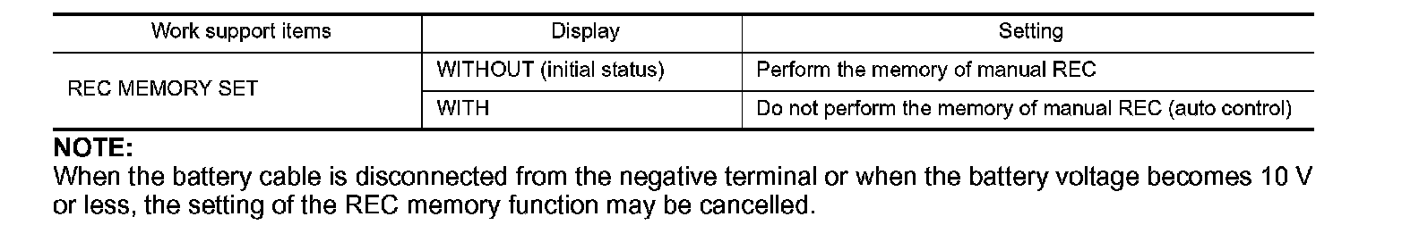 Perform the "REC MEMORY SET" of HVAC work support item.