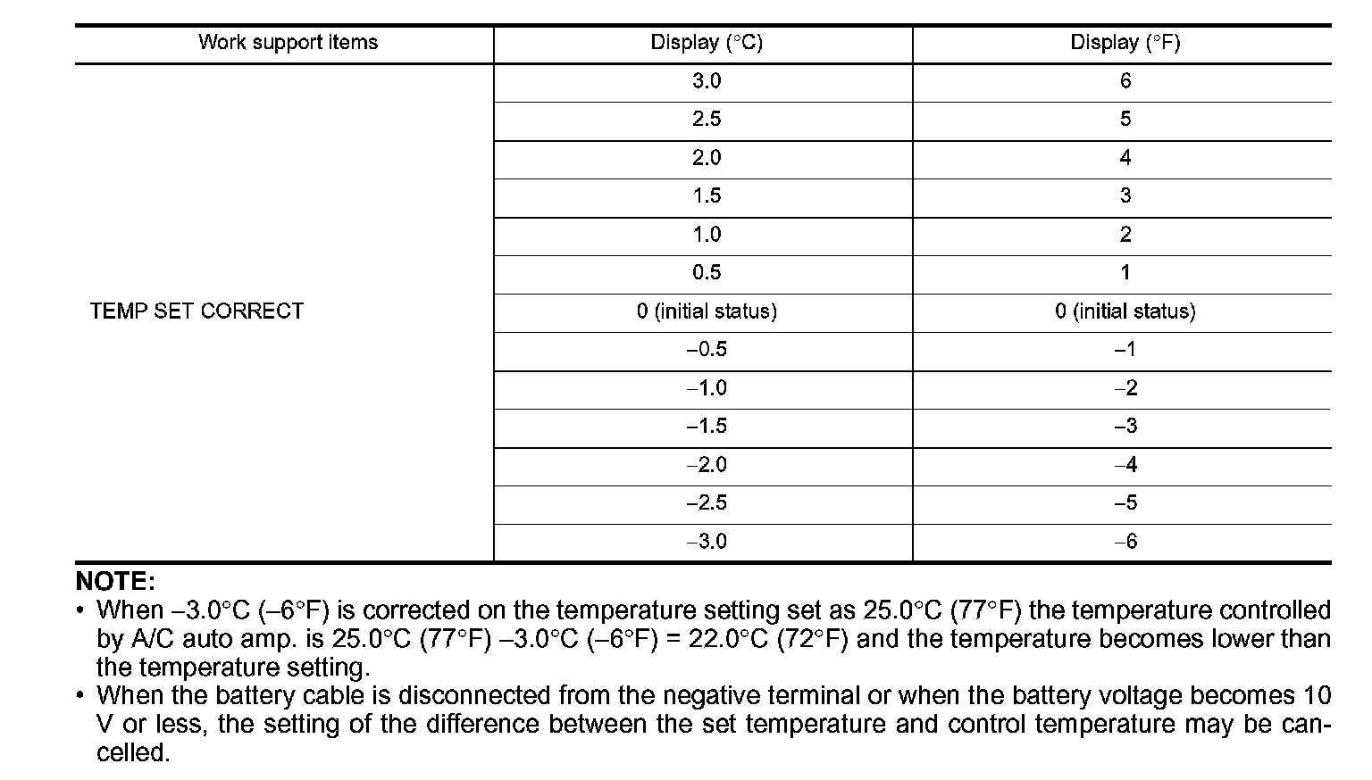 - When 3.0�C (-6�F) is corrected on the temperature setting set as 25.0�C (77�F) the temperature controlled by A/C auto amp. is 25.0�
