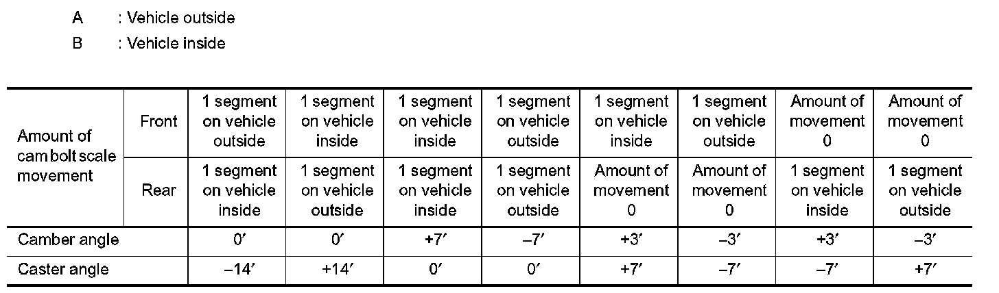 2.See the following table for the amount of cam bolt scale movement and the variation of camber and caster.