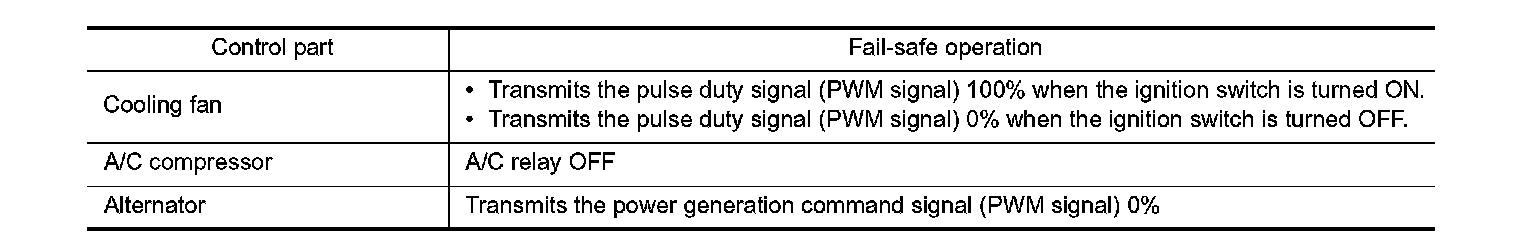 When CAN communication with ECM and BCM is impossible, IPDM E/R performs fail-safe control. After CAN