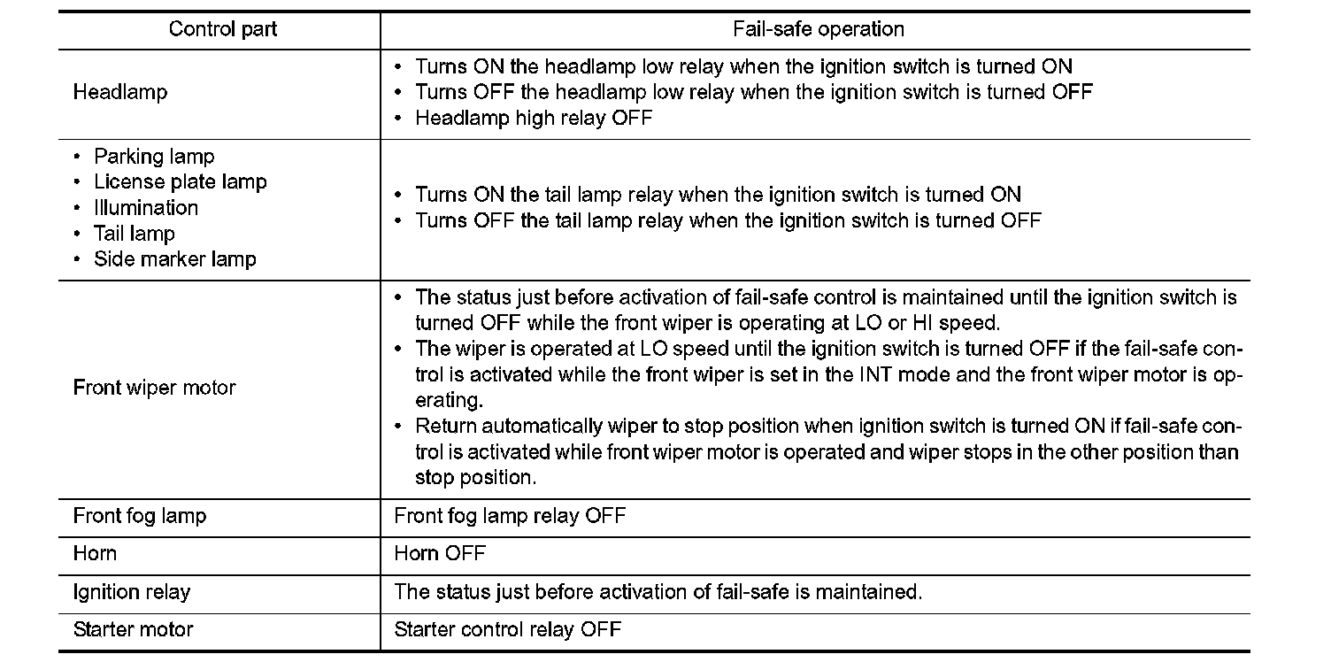 - If the ignition relay cannot turn OFF due to contact seizure, it activates the tail lamp relay for 10 minutes to alert the user to the ignition relay malfunction when the ignition switch is turned OFF.