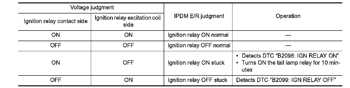 - IPDM E/R judges the ignition relay error if the voltage differs between the contact circuit and the excitation coil circuit.