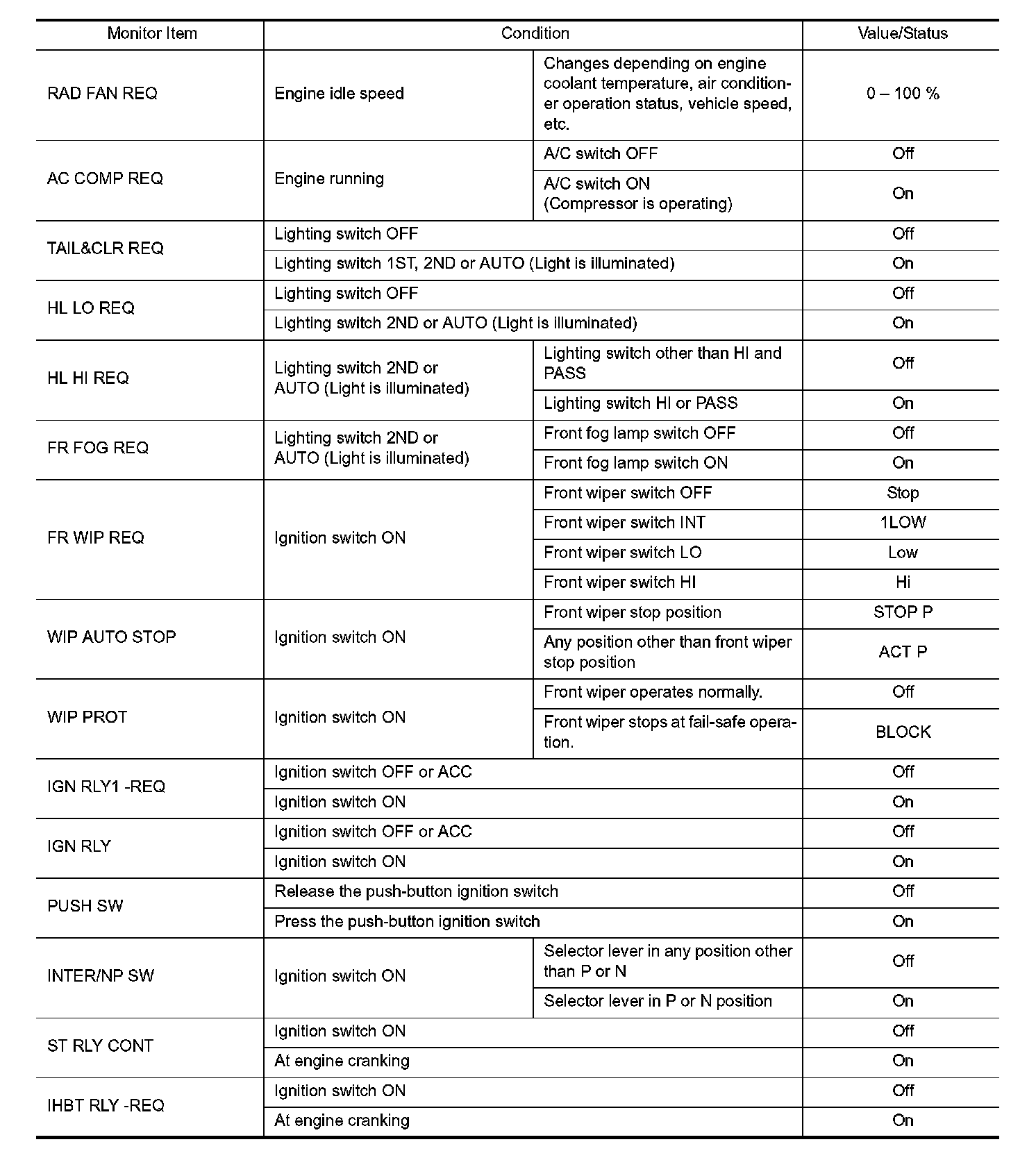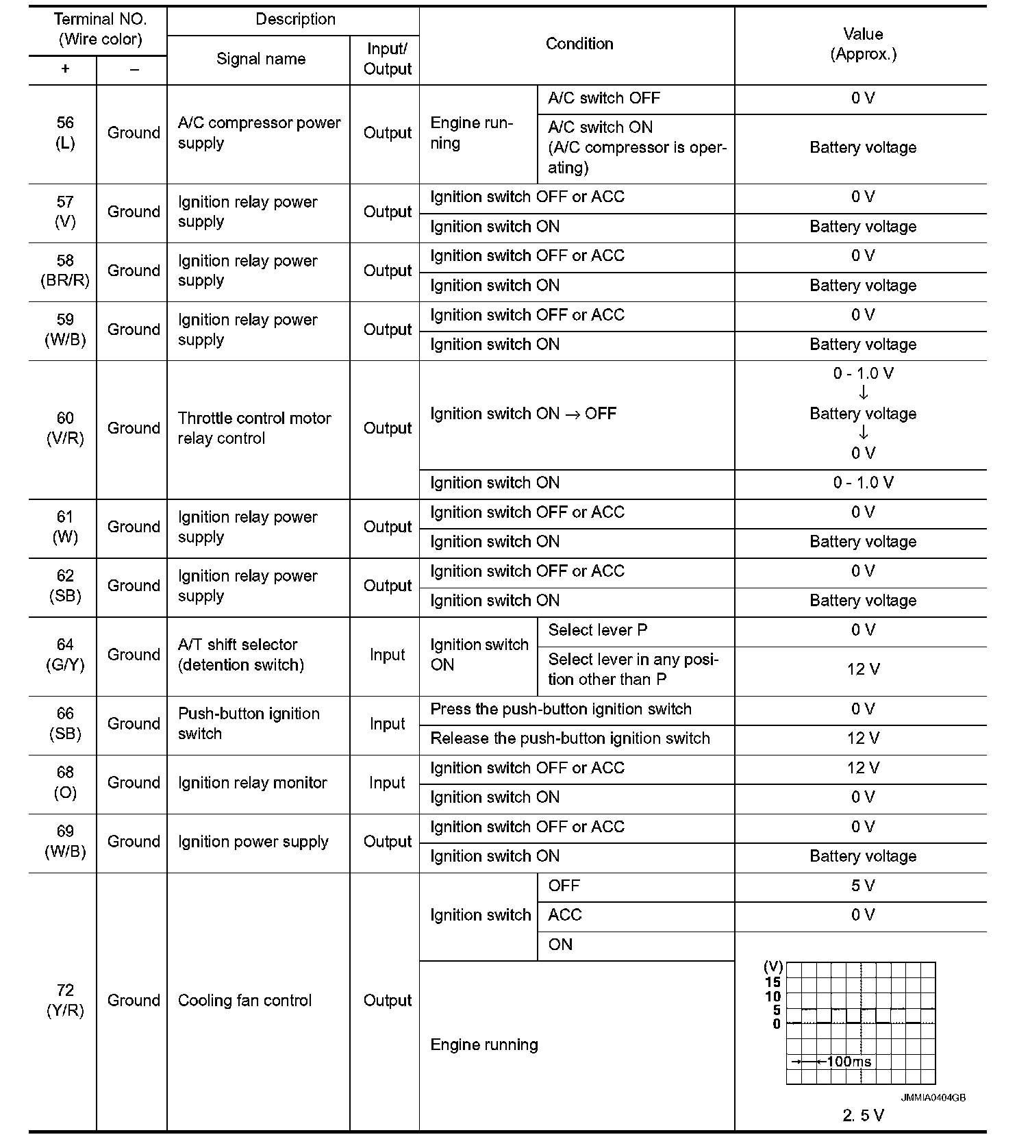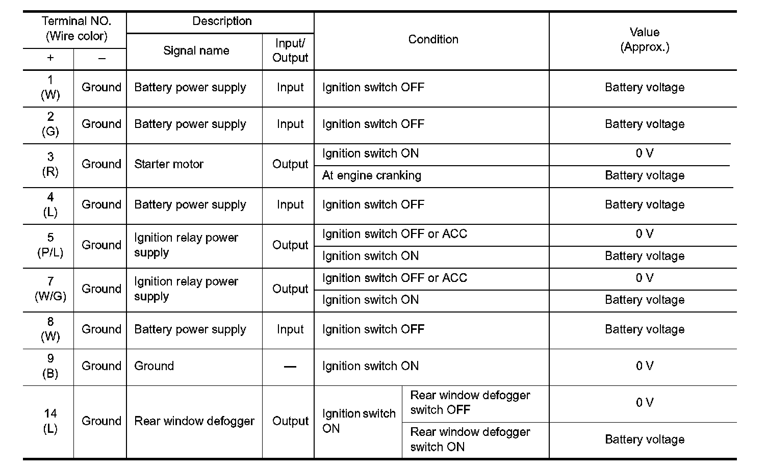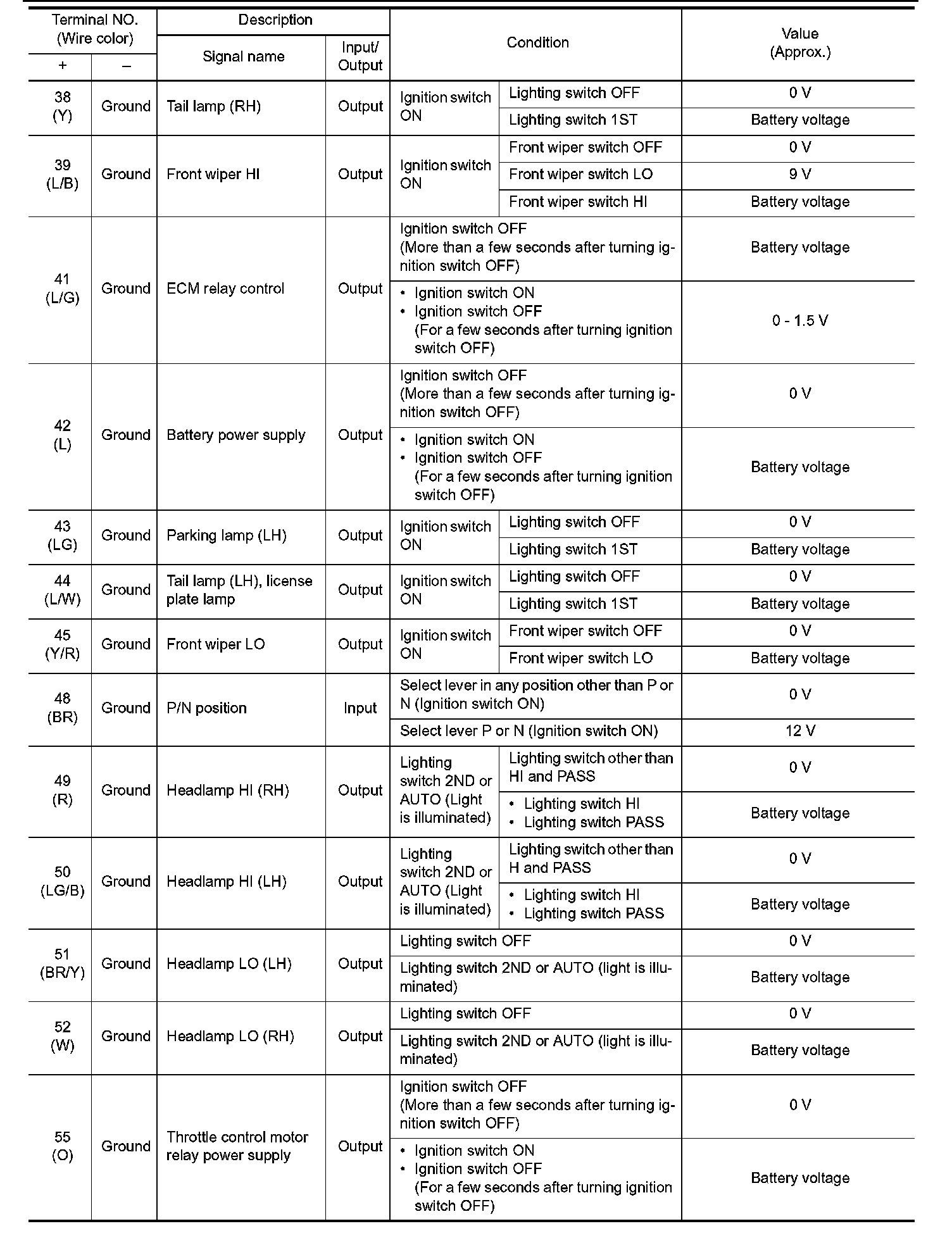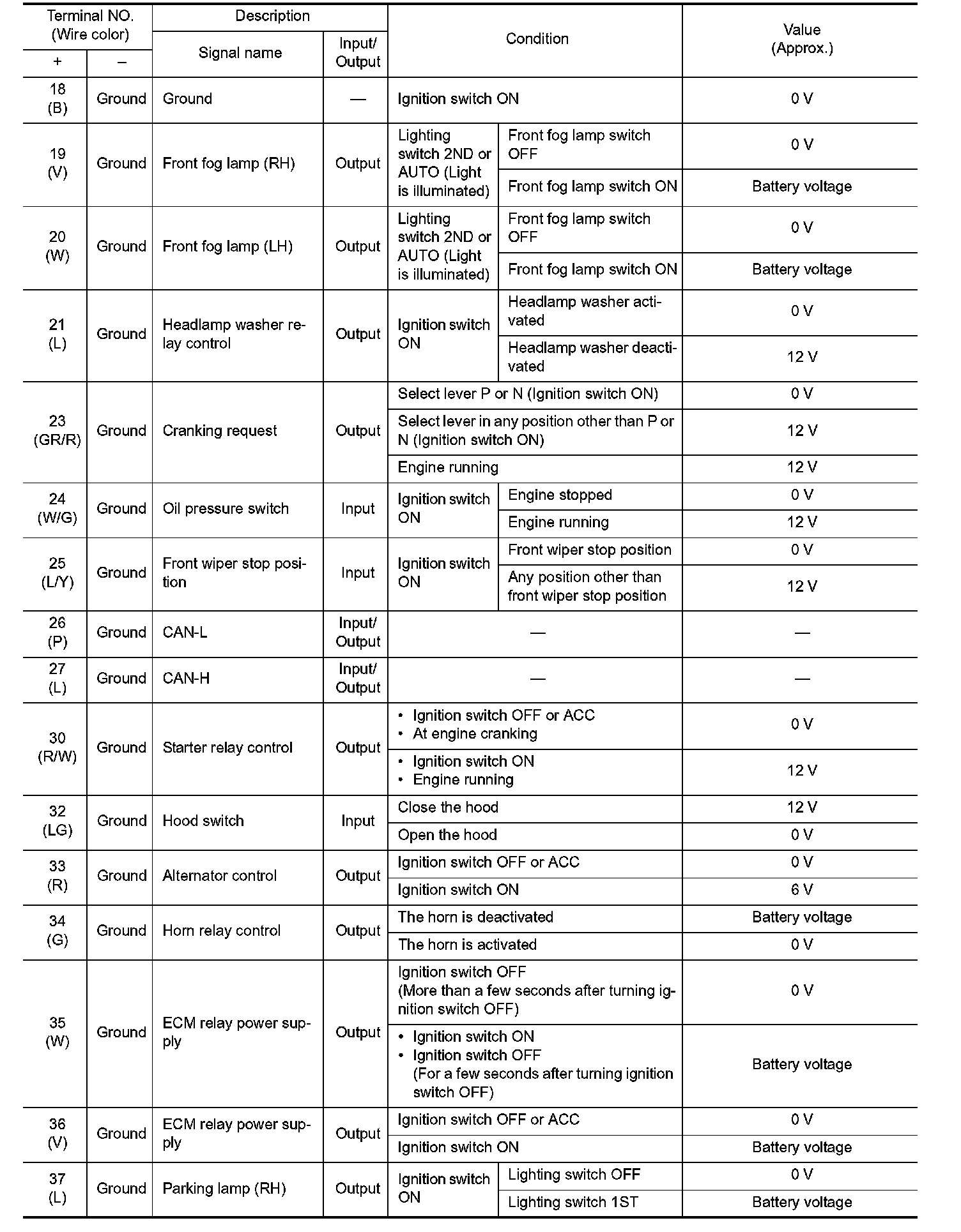Pinout Values and Diagnostic Parameters