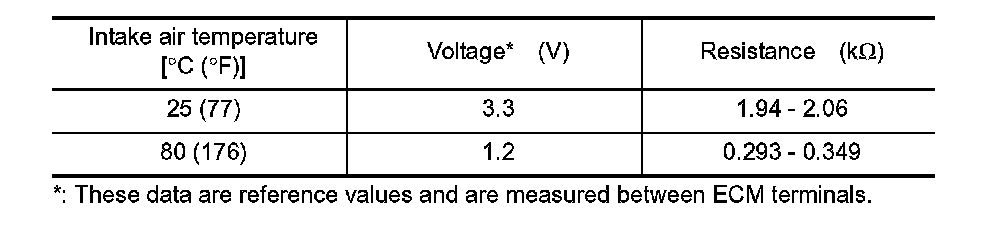 The intake air temperature (IAT) sensor is built-into the mass air flow sensor. The sensor detects intake air temperature and transmits a signal to the ECM.