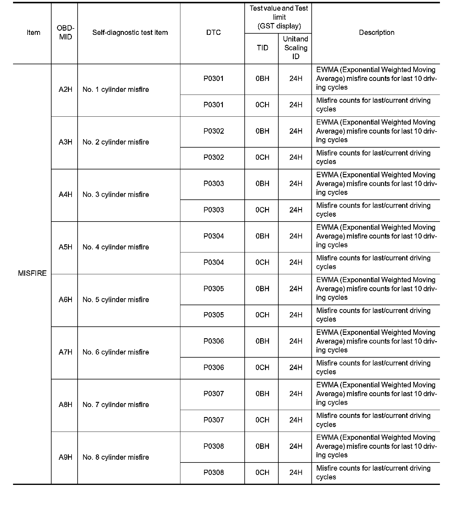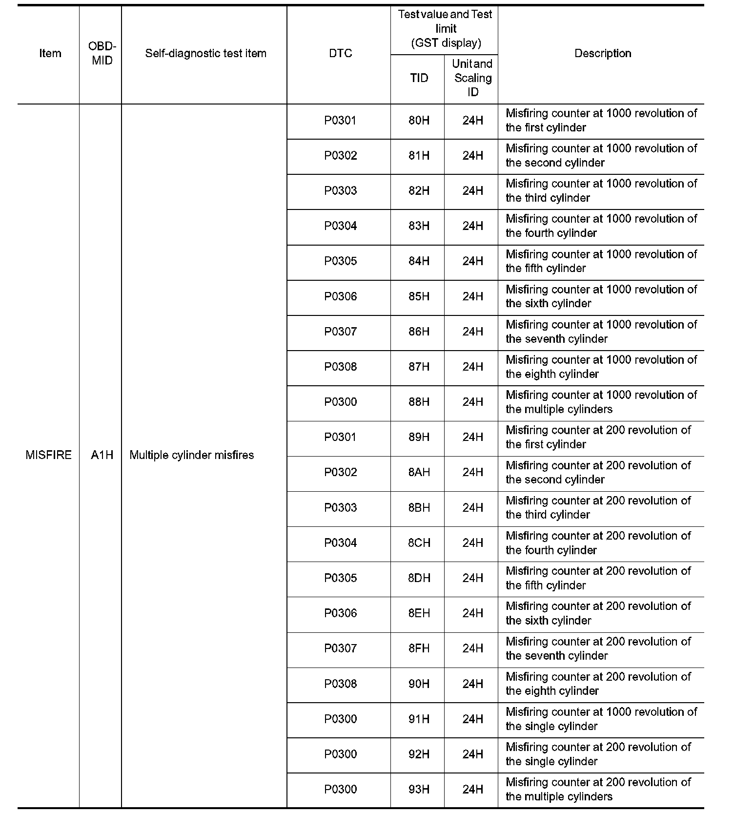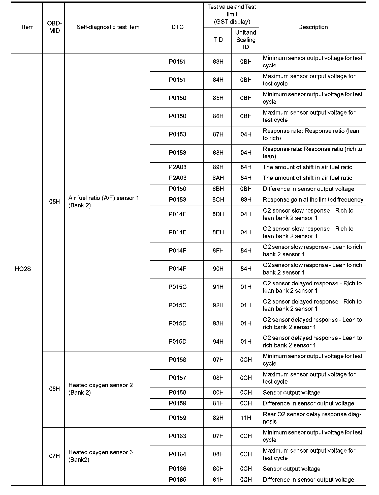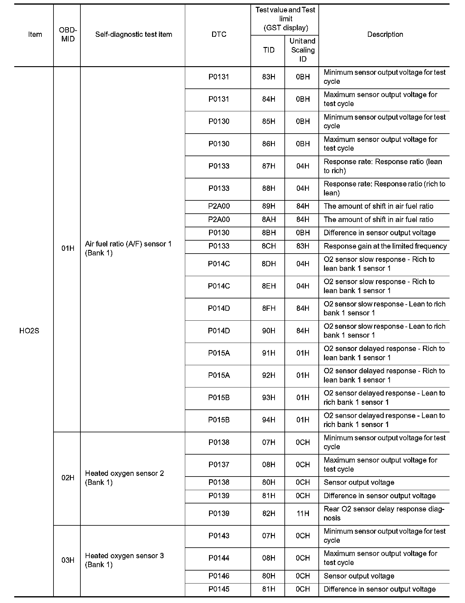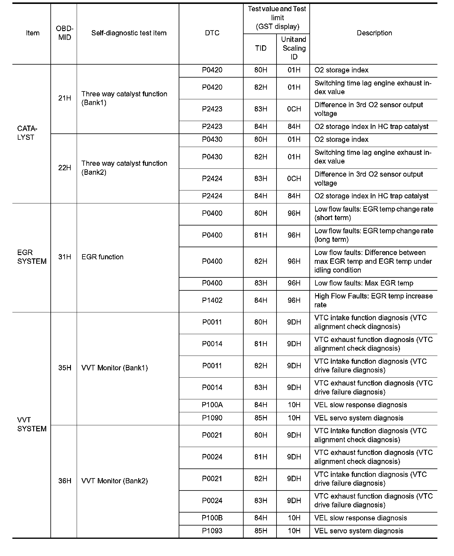 These data (test value and test limit) are specified by On Board Monitor ID (OBDMID), Test ID (TID), Unit and