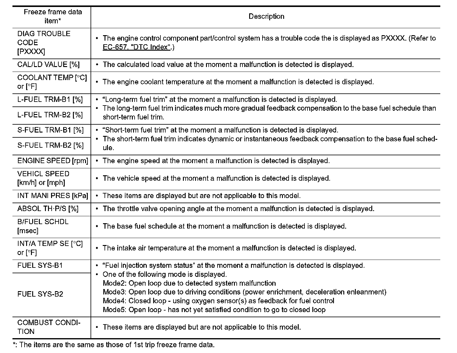 Freeze Frame Data and 1st Trip Freeze Frame Data