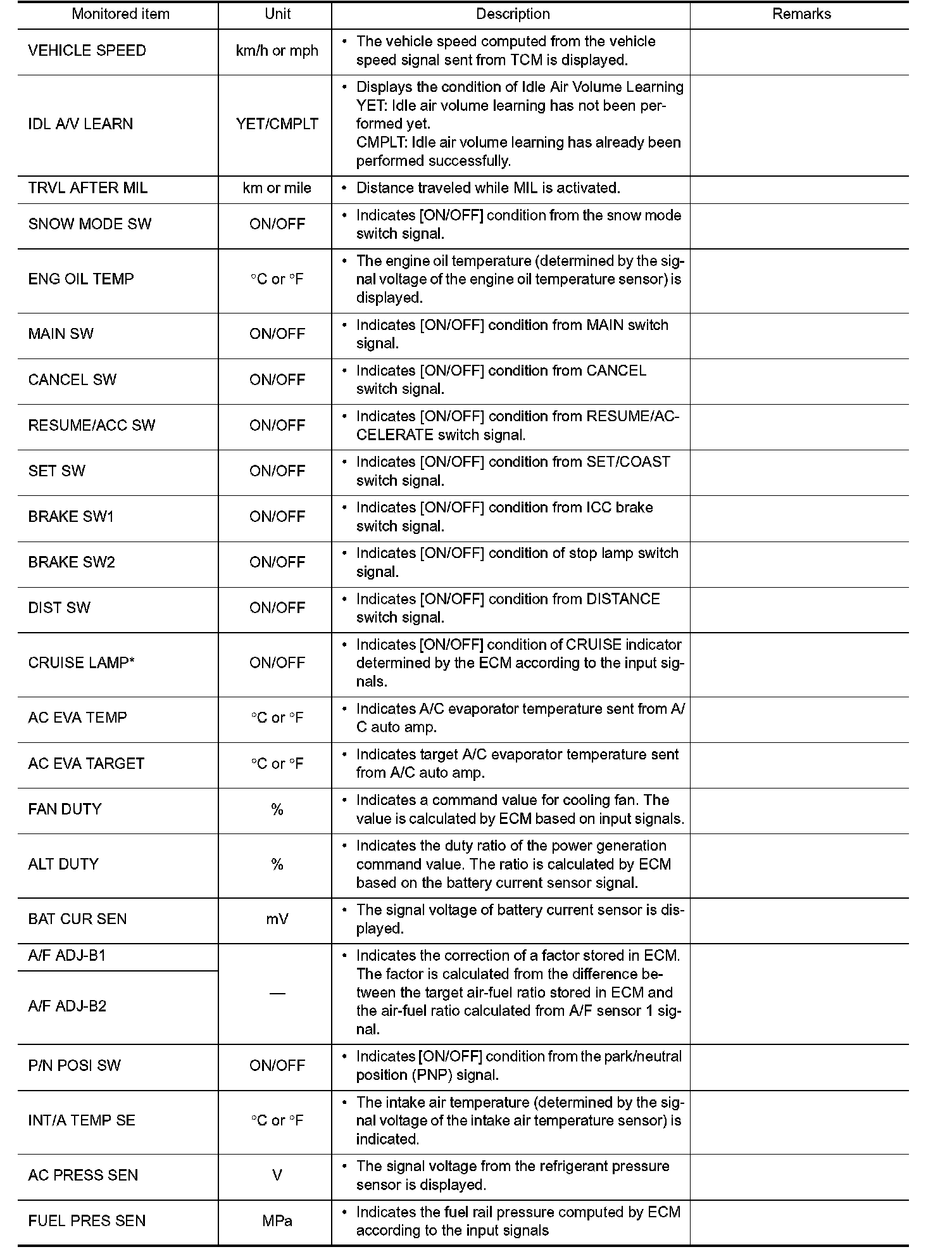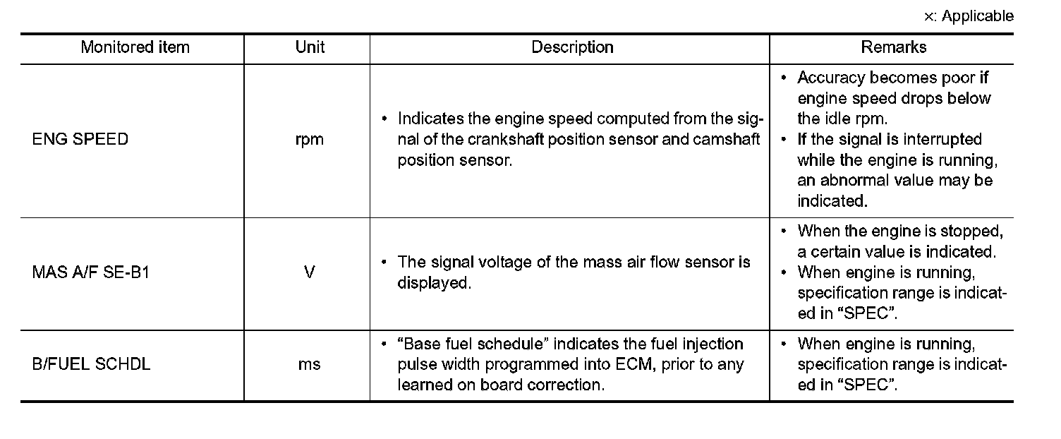 - If "TIME" is neither "0" nor "1t", the DTC occurred in the past and ECM shows the number of times the vehicle has been driven since the last detection of the DTC.