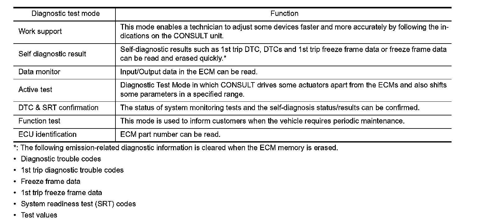 Permanent DTCs stored in ECM memory are displayed on the CONSULT screen to show if a driving pattern required for erasing permanent DTCs is complete (CMPLT) or incomplete (INCMP).