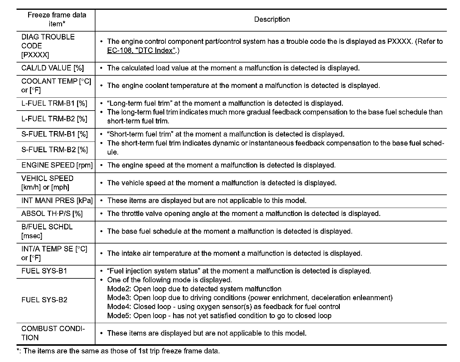 Freeze Frame Data and 1st Trip Freeze Frame Data