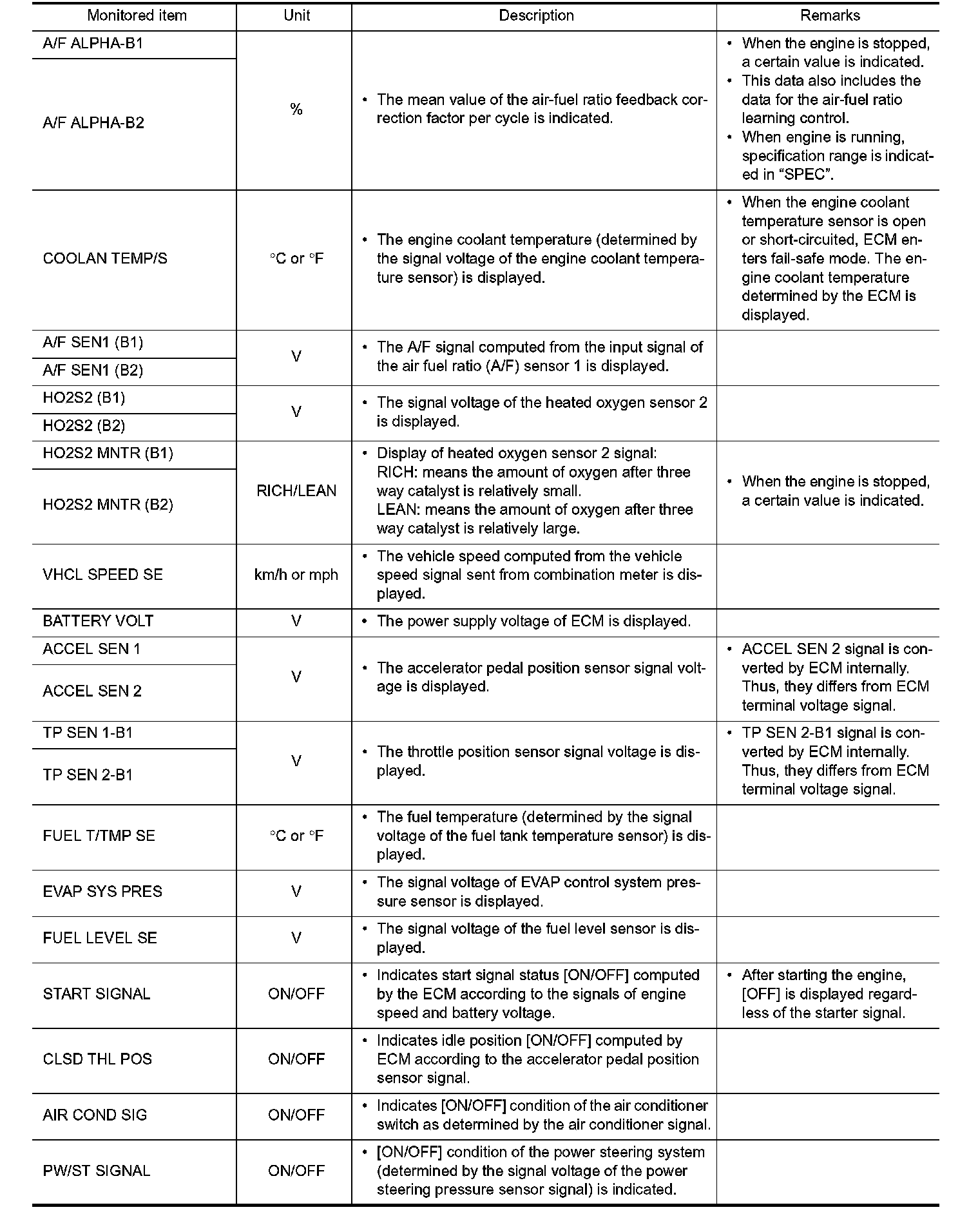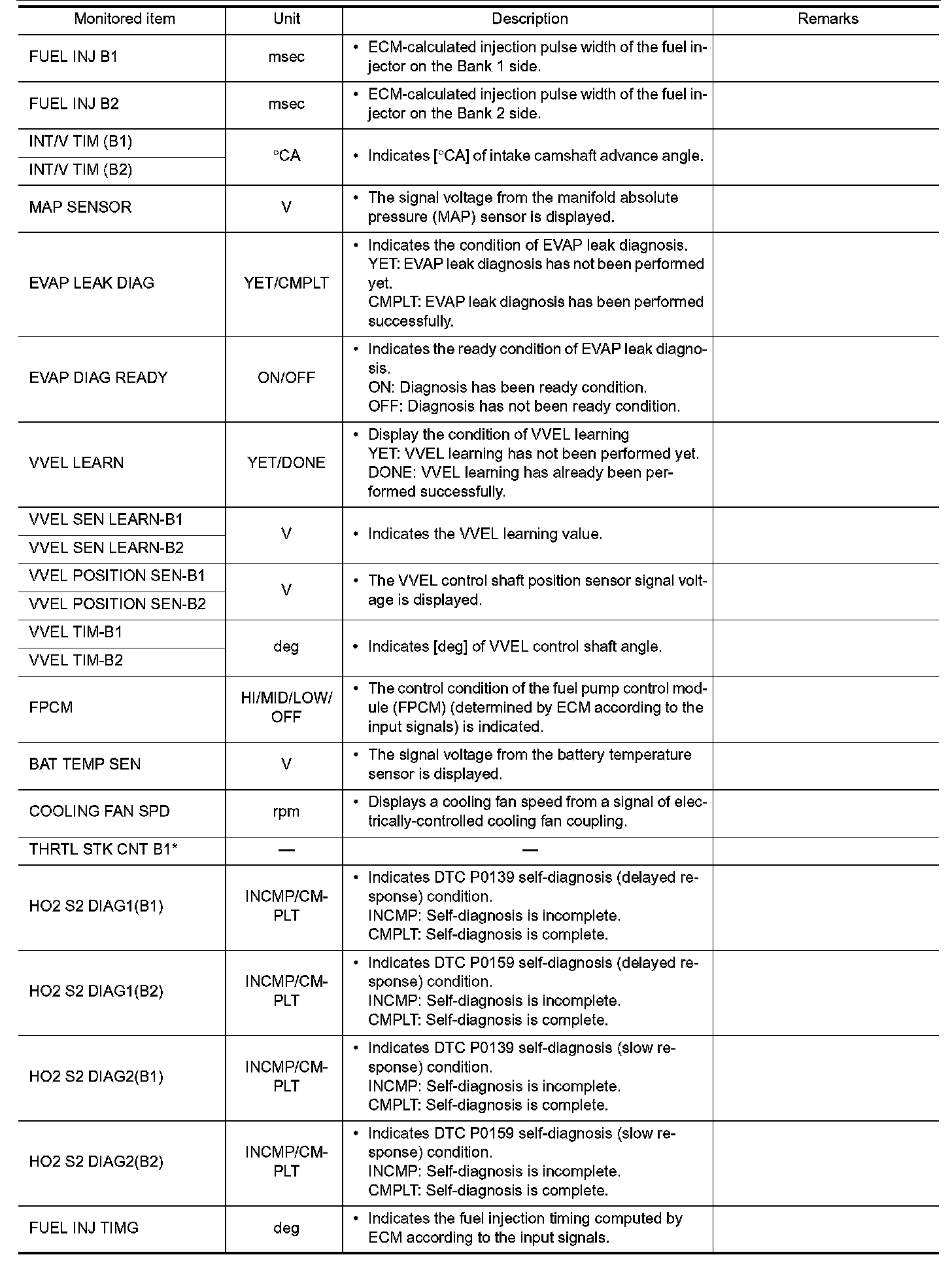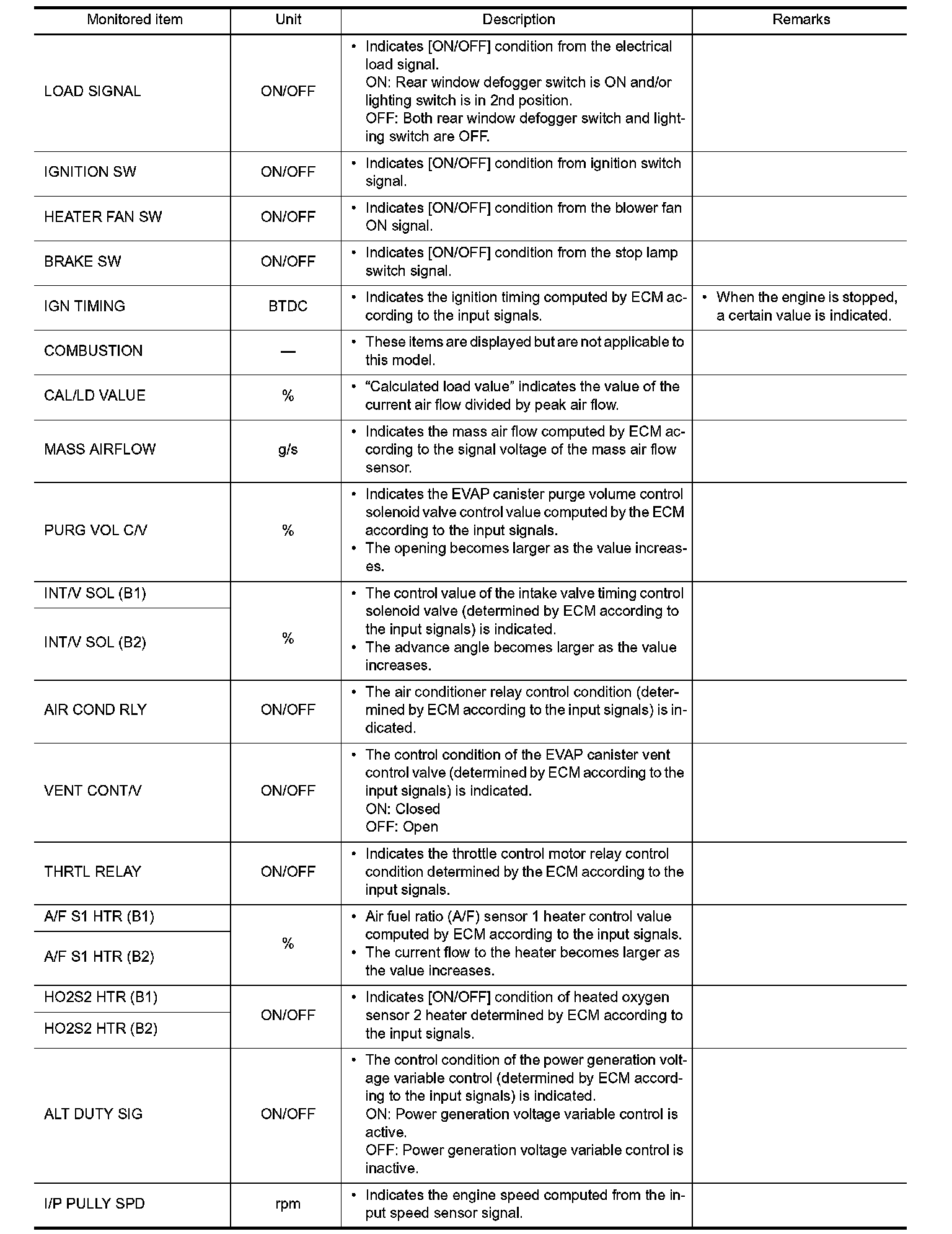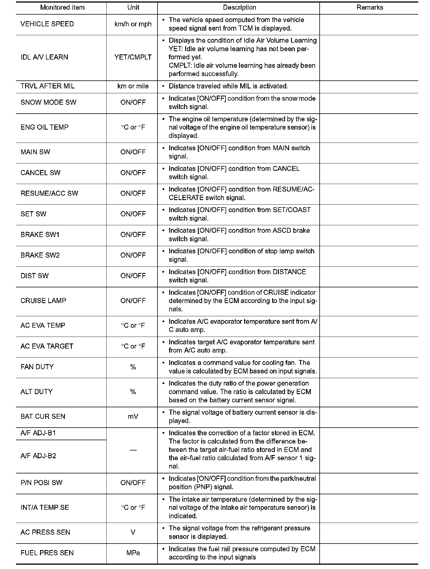 - If "TIME" is neither "0" nor "1t", the DTC occurred in the past and ECM shows the number of times the vehicle has been driven since the last detection of the DTC.