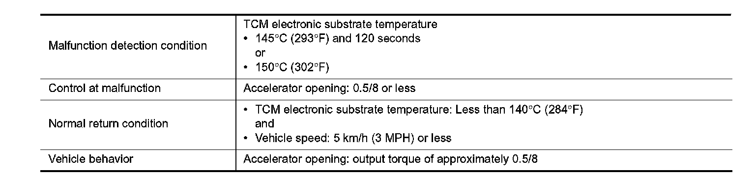 The TCM becomes the protection control status temporarily to protect the safety when the safety of TCM and transmission is lost. It automatically returns to the normal status if the safety is secured.