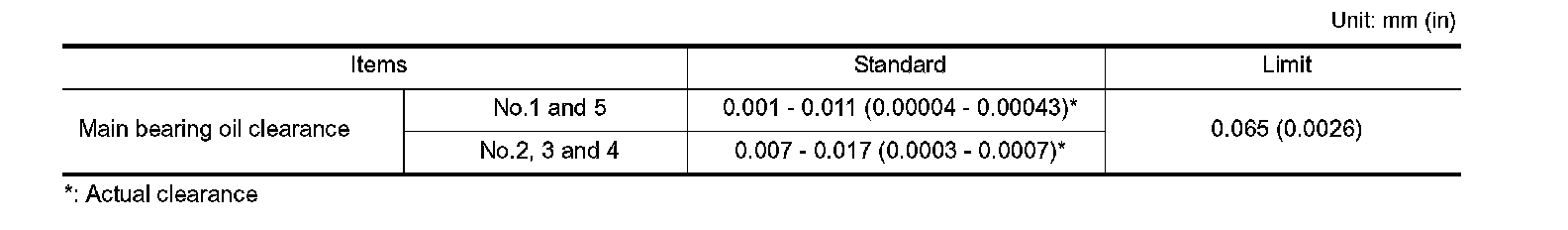 MAIN BEARING OIL CLEARANCE