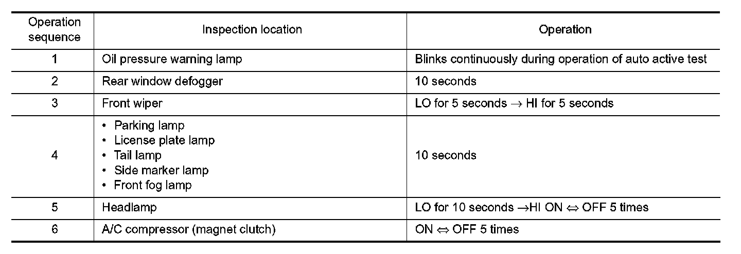 5.The oil pressure warning lamp starts blinking when the auto active test starts.